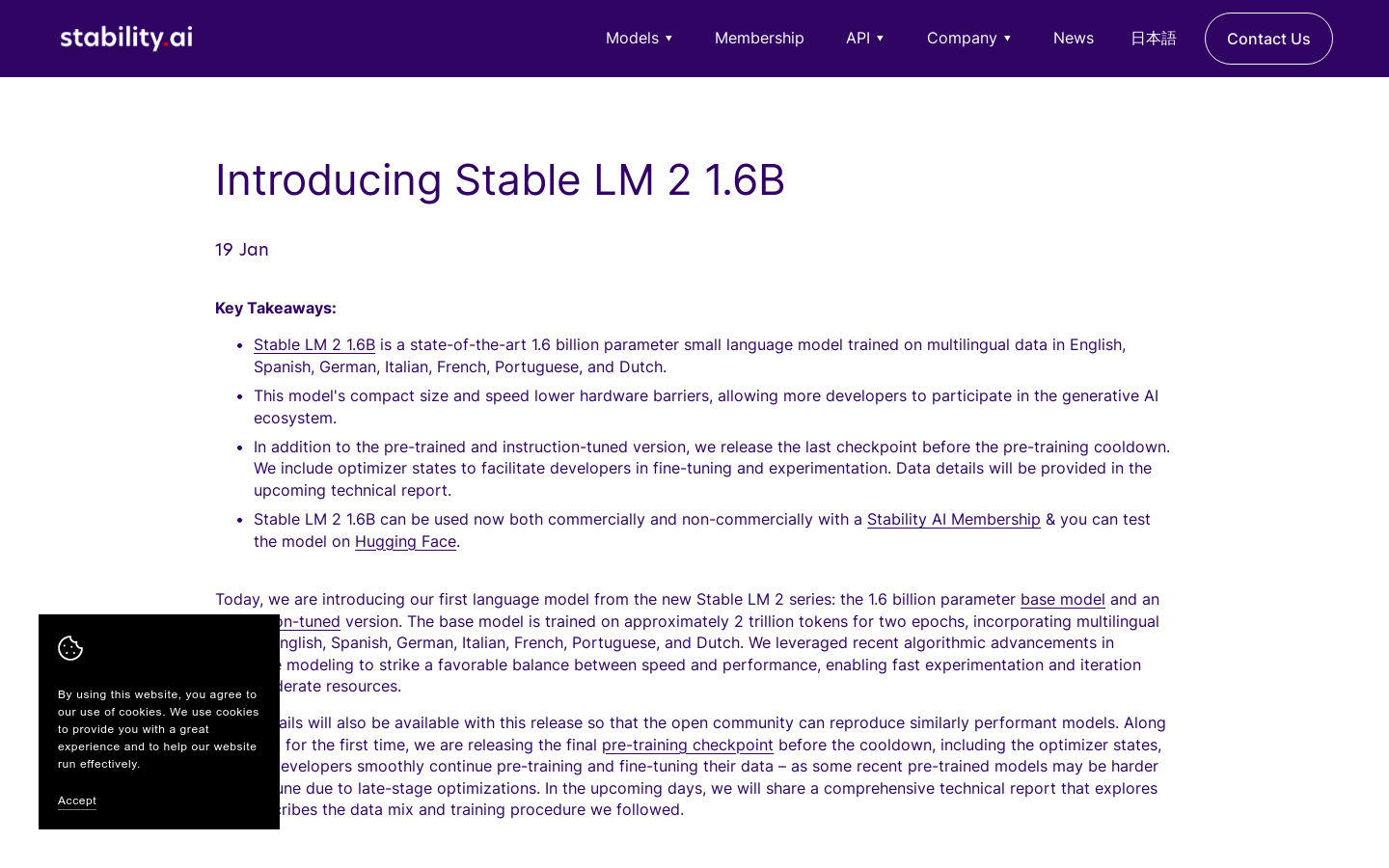 Stable LM 2 1.6B-1.6亿参数稳定语言模型