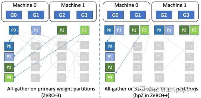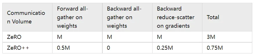 为了减少这些通信开销,ZeRO++ 进行了三组通信优化,分别针对上述三个通信集合: