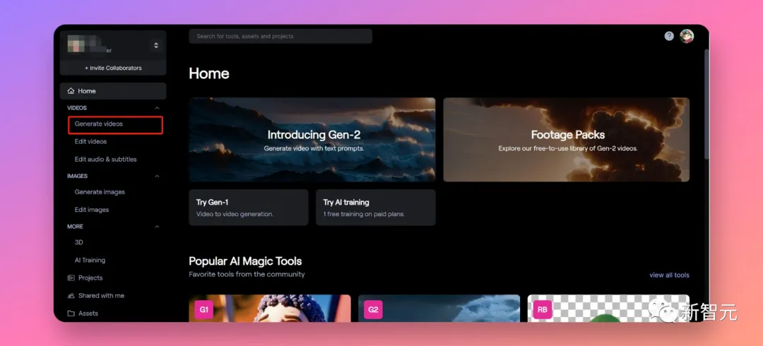 把他们排序之后,登陆app.cunwayml.com,在左边导航找到创建视频这个Tab,然后找到Frame Interpolation这个功能。