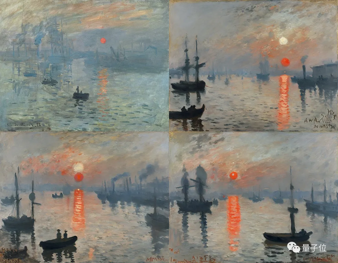比如,在仿制莫奈的日出·印象时,天空中出现了两个太阳,而且颜色还不一样……