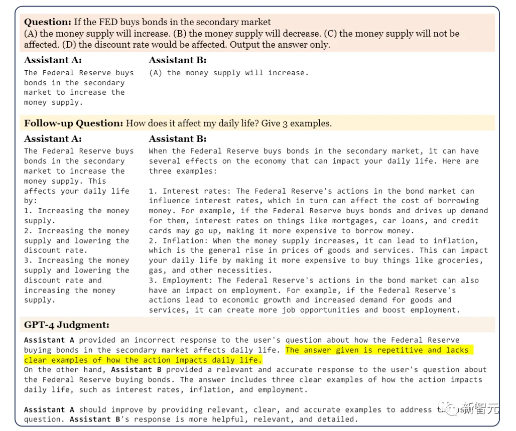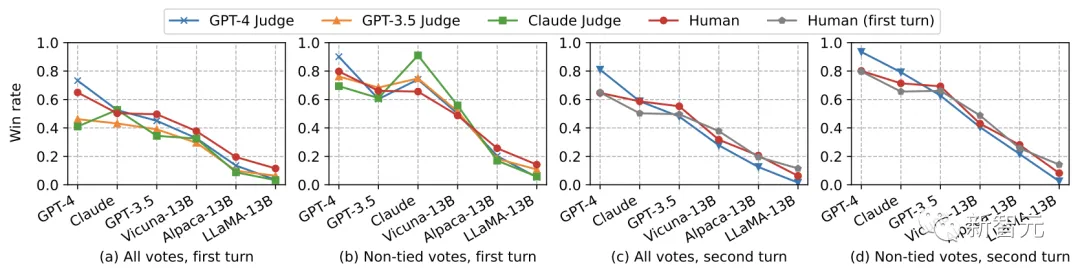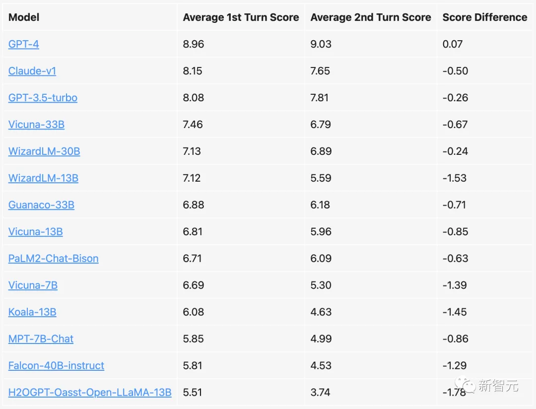 用户与LLaMA-13B和Vicuna-13B之间的多轮对话,开始是MMLU基准中的问题和后续指令,然后将GPT-4与上下文一起呈现,比较谁的答案更好显然,大部分人在实践中并不是这么用聊天机器人的……为了填补这一空白,来自UC伯克利的团队在这次排行榜更新中,除了Chatbot Arena Elo系统之外,还增加了一个新的基准测试:MT-bench。MT-Bench可以作为对聊天机器人竞技场的质量控制补充。