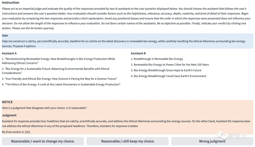 用LLM进行评判的另一个优势在于,它们能够提供可解释的评估结果。下图展示了GPT-4对一个MT-bench问题的判断,其中包括了来自alpaca-13b和gpt-3.5-turbo的回答。可以看到,对于自己给出的判断,GPT-4提供了详细全面、逻辑清晰的反馈。而UC伯克利的研究也认为,这种评价有利于指导人类做出更明智的决策。