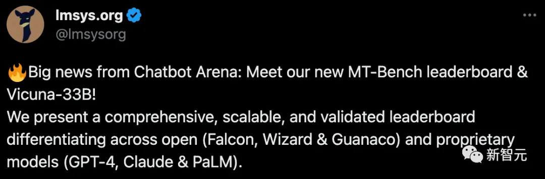【新智元导读】 备受关注的UC伯克利LLM排位赛又更新了!GPT-4依然岿然不动稳居榜首,GPT-3.5紧随其后,团队自家新发布的330亿参数Vicuna则冲至第五,代表了一众开源模型的最好成绩。****